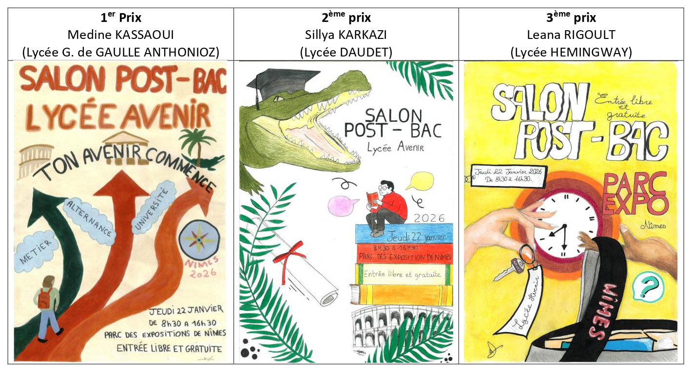 L’affiche qui constitue les différents supports de communication du salon est réalisée chaque année par un élève. Un concours est ouvert à tous les lycéens et un jury désigne les lauréats. L’œuvre du vainqueur est reprise dans toute la communication de l’évènement. Un élève du lycée G. de GAULLE ANTHONIOZ a remporté le 1er prix.